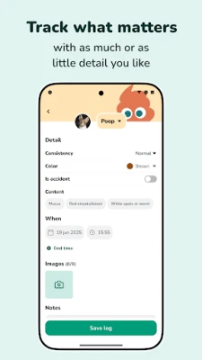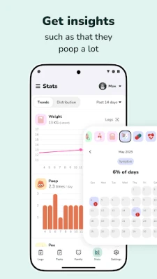 - View stats: Identify trends and patterns of your pet's health and behaviour over time - or simply see that they poop a lot.