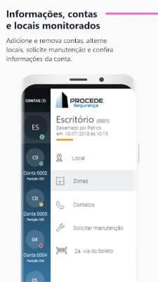O Procede Mobile é um aplicativo móvel onde o cliente monitorado pode acompanhar diretamente via celular ou tablet todas as atividades do seu sistema de segurança. Por meio do aplicativo, é possível saber o status do painel de alarme, armá-lo e desarmá-lo, visualizar as câmeras ao vivo, verificar eventos e ordens de serviço abertas, além de realizar chamadas telefônicas para contatos cadastrados no seu perfil. É a segurança que você precisa na palma da sua mão.