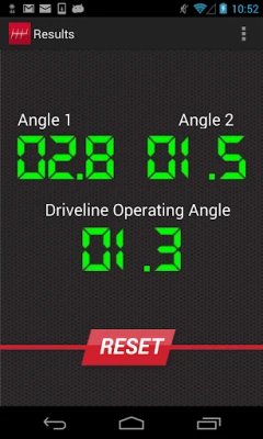• Driveline Angle Finder: Take the guesswork out of your chassis setup with this handy 3-step tool! By using your smartphone as a measuring device, the app will calculate each u-joint angle and provide an overall driveline operating angle with a Pass/Fail response. Designed for RWD vehicles equipped with a one-piece driveshaft.