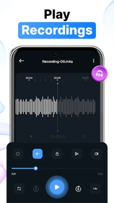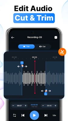 Enjoy a seamless experience of this voice recording app with advanced tools like noise reduction, echo cancellation, and noise separation that keep your recordings clear and free of distractions. The audio recorder app automatically pauses and resumes recording without interruption if a call comes in. Recordings are easy to manage, trim or cut unnecessary parts with the audio trimmer and cutter, lock private files for security, and easily share your memos with others.